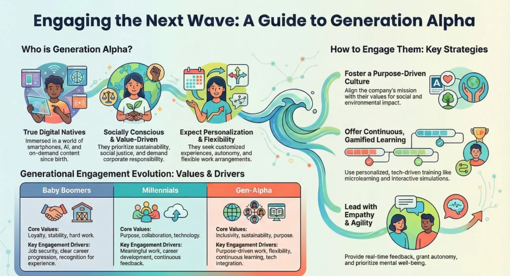 Guides leaders to adopt empathetic, agile, and emotionally intelligent leadership styles that resonate with Gen-Alpha’s expectations.
