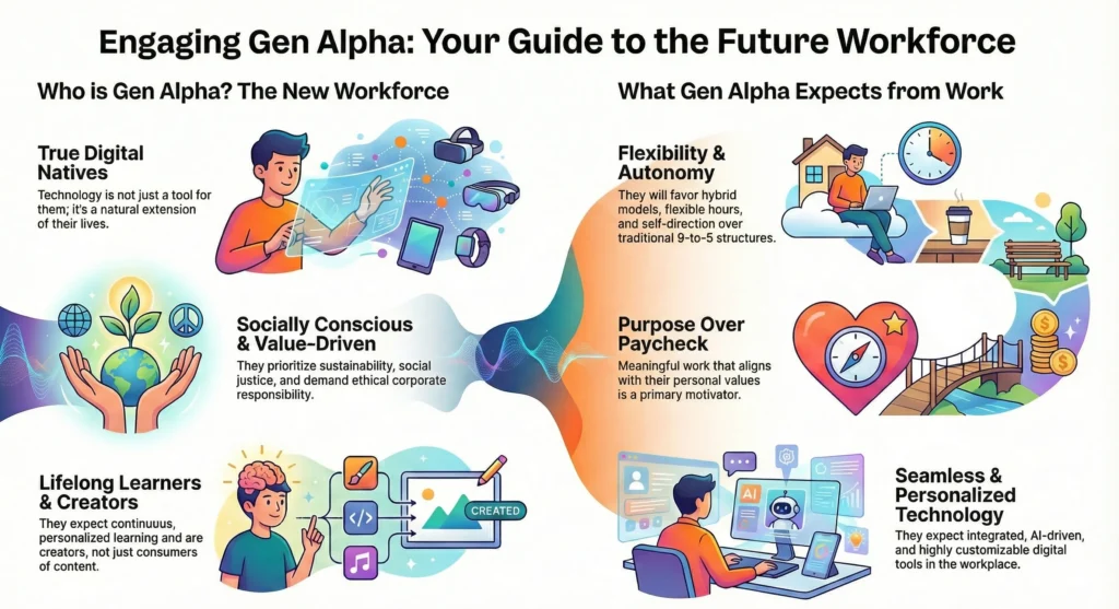 Explores how technology—from AI to social media to gamification—has become central to Gen-Alpha’s engagement and performance at work.